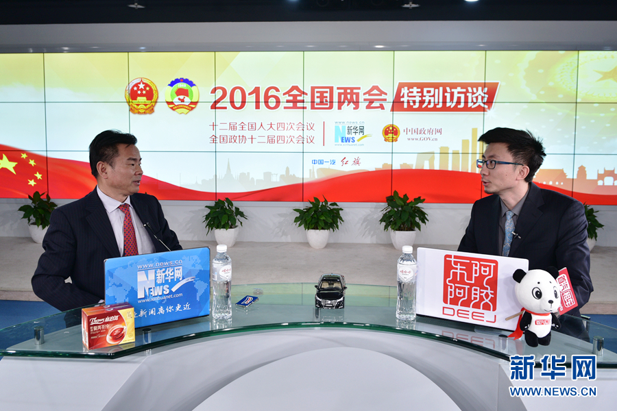 ????2016年3月13日,全國人大代表、海南省三沙市委書記、市政府市長肖杰做客新華網(wǎng)兩會訪談直播間。圖為肖杰回答主持人提問。新華網(wǎng) 郭小天 攝