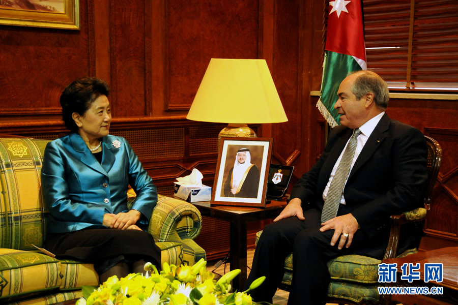 4月20日,在約旦首都安曼,約旦首相兼國防大臣穆勒吉(右)會見中國國務院副總理劉延東。 新華社記者林曉蔚攝