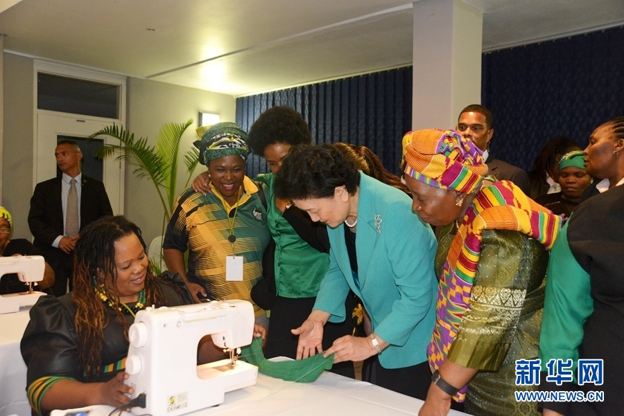 4月26日,中國國務(wù)院副總理劉延?xùn)|(中)在南非德班出席全國婦聯(lián)向非國大婦聯(lián)捐贈(zèng)縫紉機(jī)儀式。 新華社記者田弘毅攝