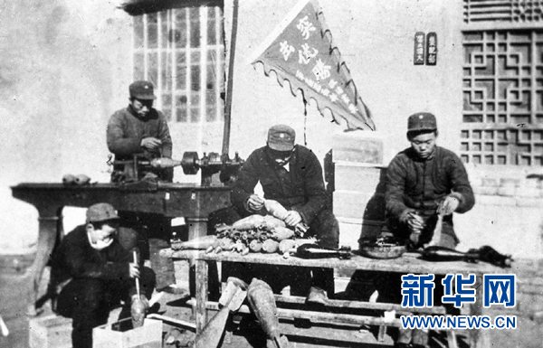 這是抗日戰(zhàn)爭(zhēng)時(shí)期,在極困難的條件下,山東渤海軍區(qū)部隊(duì)自己制造槍炮子彈(資料照片)。新華社發(fā)