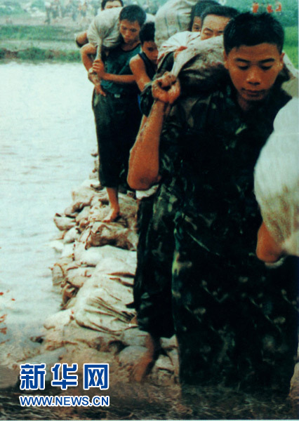 李向群在抗洪搶險(xiǎn)一線(資料圖片)。新華社發(fā)