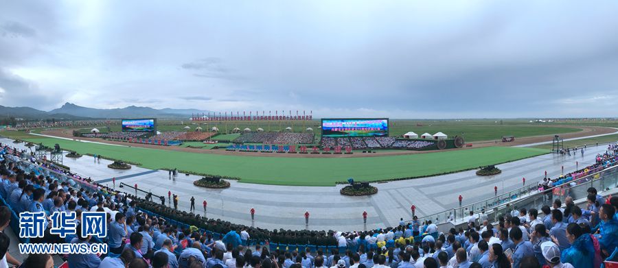 8月8日,內蒙古自治區成立70周年慶祝大會在呼和塔拉內蒙古少數民族群眾文化體育運動中心舉行。圖為大會現場。新華網記者 陳杰 攝
