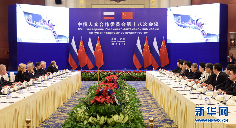 9月12日,中國國務(wù)院副總理、中俄人文合作委員會(huì)中方主席劉延?xùn)|在廣州與俄羅斯副總理、委員會(huì)俄方主席戈洛杰茨共同主持召開中俄人文合作委員會(huì)第十八次會(huì)議。新華社記者 盧漢欣 攝