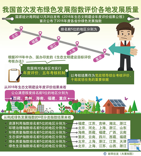 圖表:我國首次發(fā)布綠色發(fā)展指數評價各地發(fā)展質量 新華社發(fā) 大巢制圖