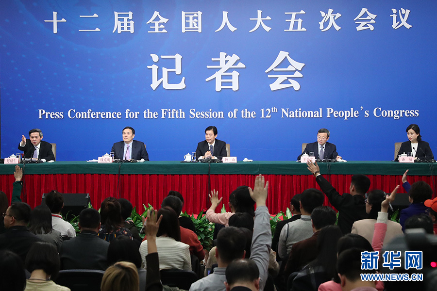 3月11日,十二屆全國人大五次會議新聞中心舉行記者會,主題是“改革開放調結構 創新驅動促發展”,商務部部長鐘山、副部長王受文、副部長錢克明出席并回答中外記者的提問。圖為記者會現場。 新華網/中國政府網 傅義洲 攝