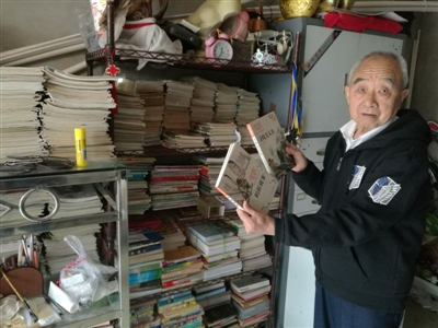 劉圖恥每個星期都要去收兩三次廢報紙,每個單位個把月去一趟,收到廢舊報刊后,劉圖恥會進行分揀,好的書刊留下來,其余的賣到廢品收購點。劉圖恥買的書,有的是廢品站“淘來”的,有的是書攤上購買的。