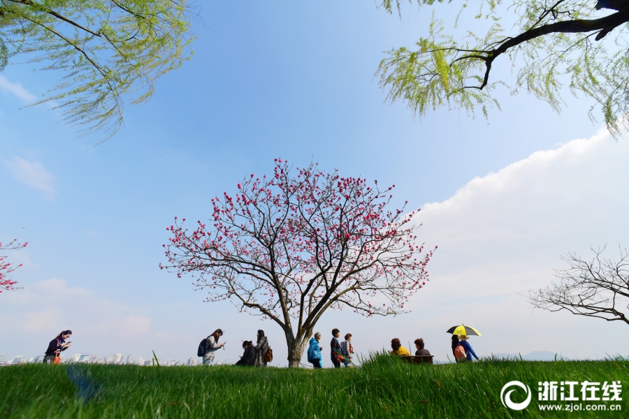 3月26日,雨后西湖再度晴歸。西湖白堤,正是桃紅柳綠時(shí)。(浙江在線(xiàn)拍友 里爾 攝)