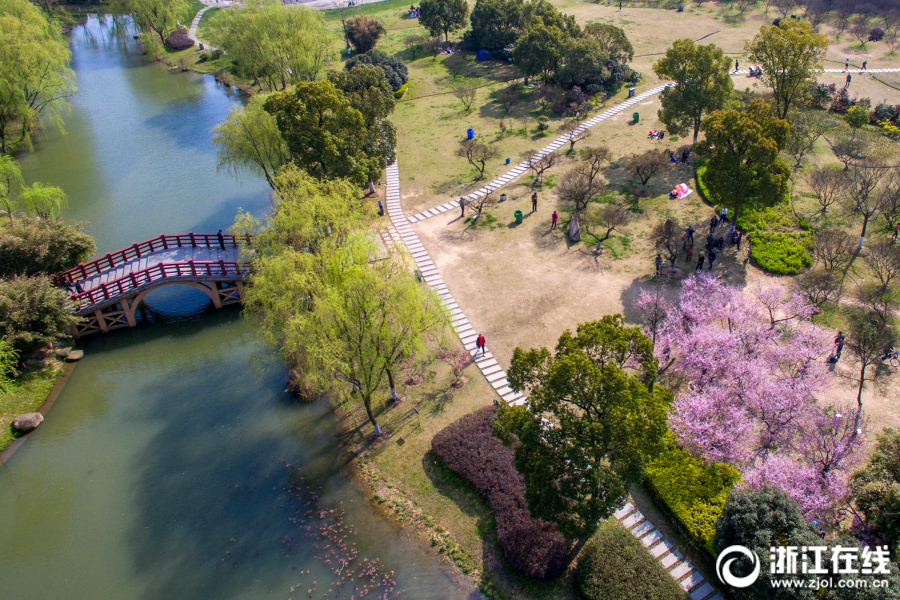 3月26日下午, 長興縣龍山街道植物園路兩側的公園內花香浮動,生機盎然,市民們紛紛出門踏青賞花,享受絢麗春光。(浙江在線拍友 譚云俸 張澤民 攝)