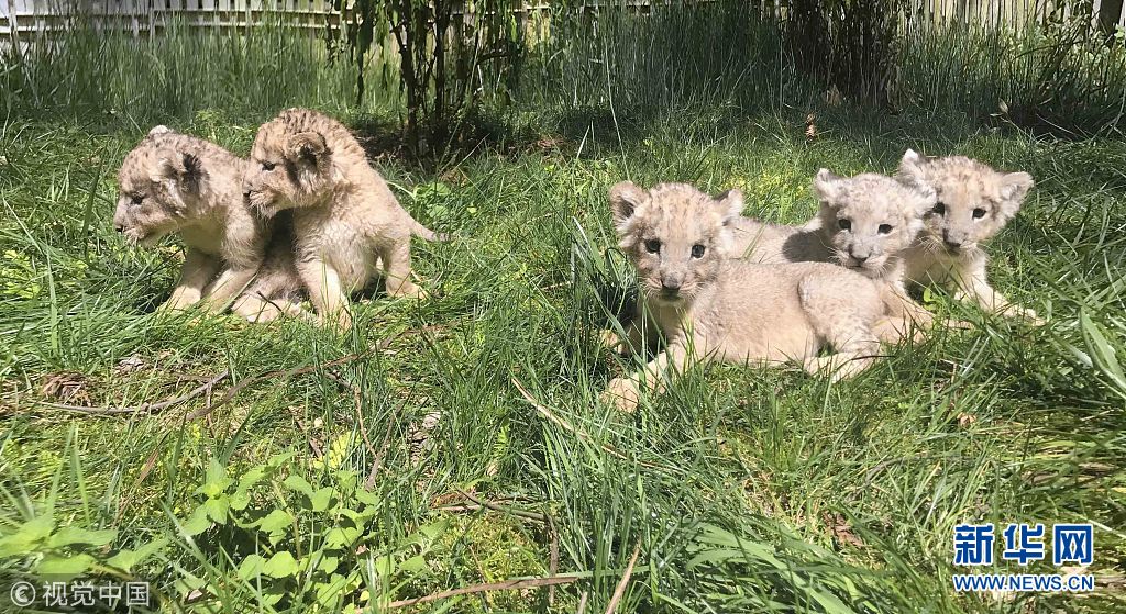 4月17日,在貴州森林野生動物園珍稀動物區,記者見到了5只剛出生的小獅子。5只小非洲獅合影。(圖片來源:視覺中國)