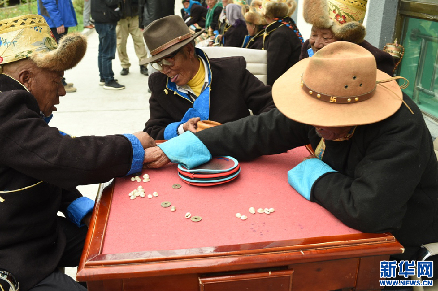 老人們?cè)谖灞?hù)集中供養(yǎng)服務(wù)中心開(kāi)心地玩牌(5月11日 攝)。新華網(wǎng)記者 陳琳 攝