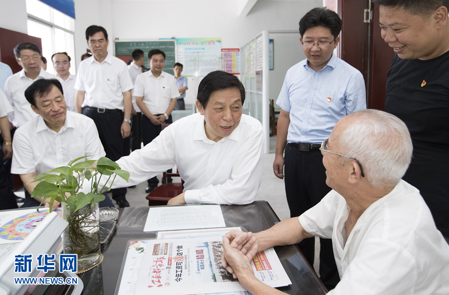 7月19日至23日,中共中央政治局常委、全國人大常委會委員長栗戰書在江西調研。這是7月20日,栗戰書專程來到瑞金市葉坪鄉仰山村,在村醫務室詢問村民看病等情況。 新華社記者黃敬文 攝