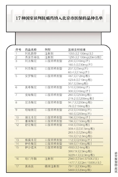 為做好國家談判的17種抗癌藥供應保障,北京市衛生部門近期已將談判藥品按支付標準在藥品陽光采購平臺上公開掛網,要求醫療機構暢通進院渠道并按新的價格采購和銷售。