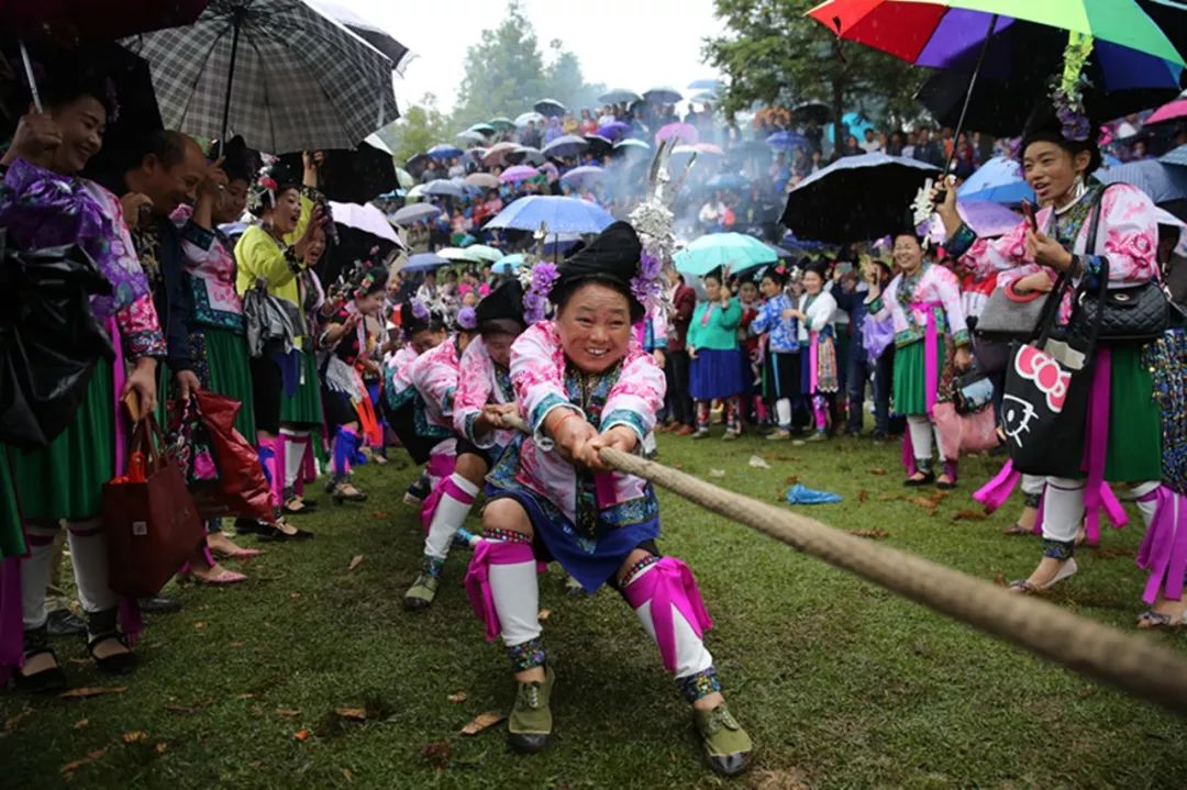 2018-09-27,廣西融水。苗族群眾在拔河比賽中喜迎國慶佳節(jié)。作者:大苗山人