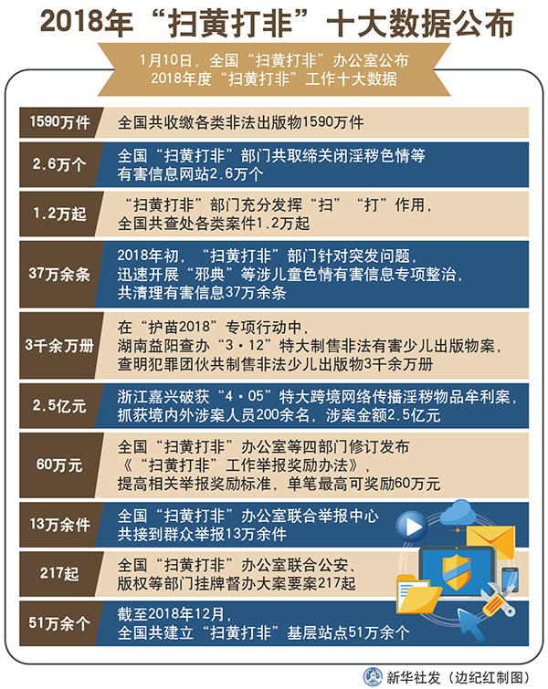 圖表:2018年“掃黃打非”十大數(shù)據(jù)公布 新華社發(fā) 邊紀紅 制圖