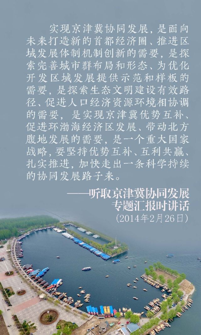 在京津冀協同發展每一個重要階段和關鍵環節,習近平總書記都親自把脈定向,為京津冀協同發展工作指明方向。總書記多次強調,京津冀協同發展是個大思路、大戰略,要通過疏解北京非首都功能,調整經濟結構和空間結構,走出一條內涵集約發展的新路子,探索出一種人口經濟密集地區優化開發的模式,促進區域協調發展,形成新增長極。