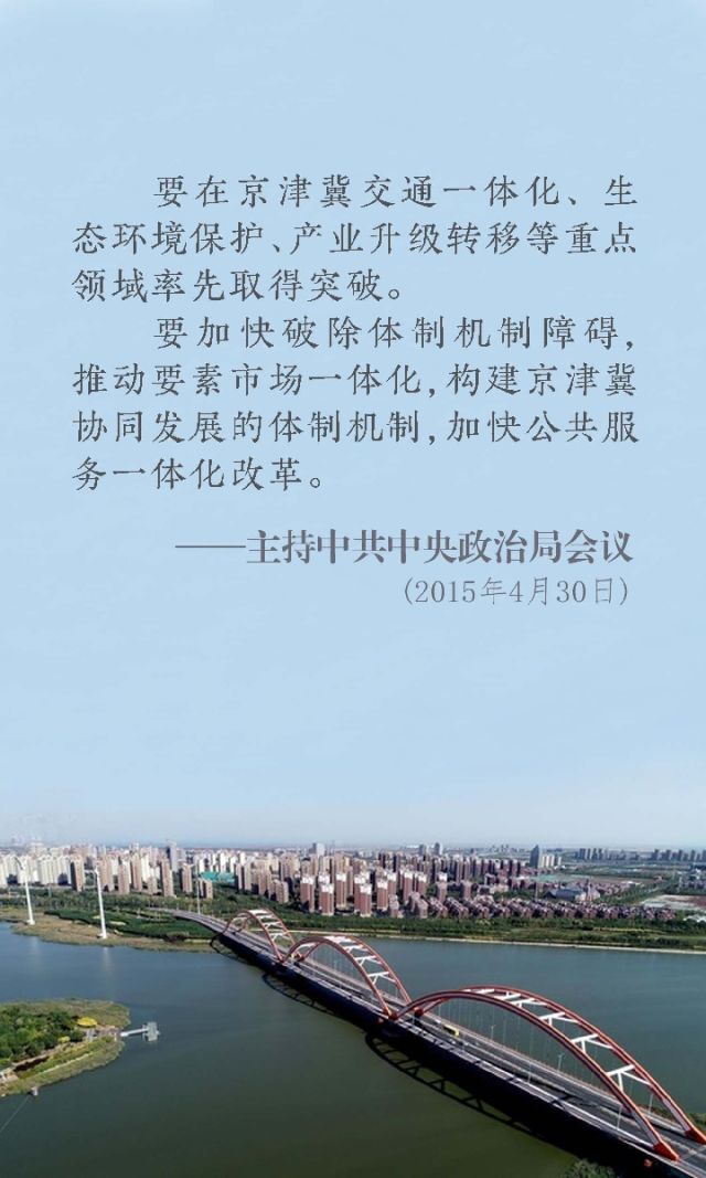 ——2015年6月,中共中央、國務院印發《京津冀協同發展規劃綱要》,確定了“功能互補、區域聯動、軸向集聚、節點支撐”的布局思路,描繪了京津冀協同發展的宏偉藍圖。