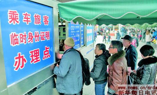 旅客在重慶火車北站南站房乘車旅客臨時身份證明辦理點排隊辦證。(資料照片) 新華社記者劉潺攝