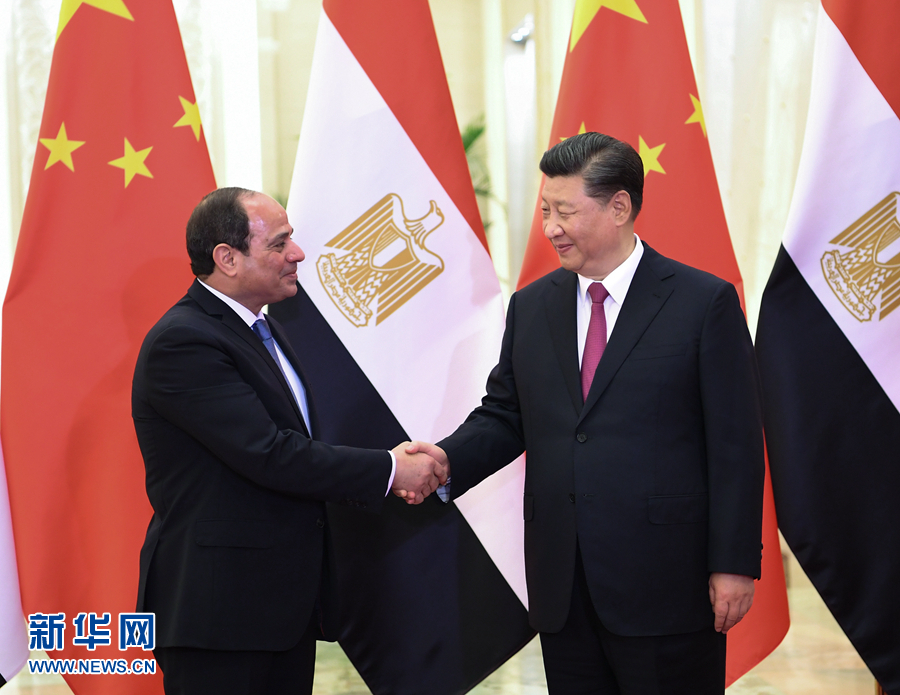 習近平強調,埃及是非洲聯盟輪值主席國,總統先生來華出席第二屆“一帶一路”國際合作高峰論壇,不僅體現了埃及積極參與共建“一帶一路”的真誠意愿,也代表著非洲國家尋求互利共贏、實現共同發展的普遍呼聲。中方高度重視發展同埃及關系。雙方要深化政治互信,繼續在涉及彼此核心利益和重大關切問題上相互支持和配合。中方始終支持埃及探索符合本國國情的發展道路,愿積極參與蘇伊士運河走廊開發計劃,持續推進蘇伊士經貿合作區建設及產能、基礎設施建設等領域合作。中方還將在埃及設立“魯班工坊”,向埃及青年提供職業技能培訓。雙方要深化反恐和安全合作,持續密切人文交流。中國感謝非洲人民對中國的信任,我們支持非洲和平安全與可持續發展倡議和非洲一體化進程,愿同埃方加強對非三方合作,共同促進非洲基礎設施建設。