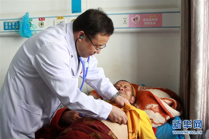 這是來自北京的援青干部劉云軍為患者診療(資料照片)。新華社發