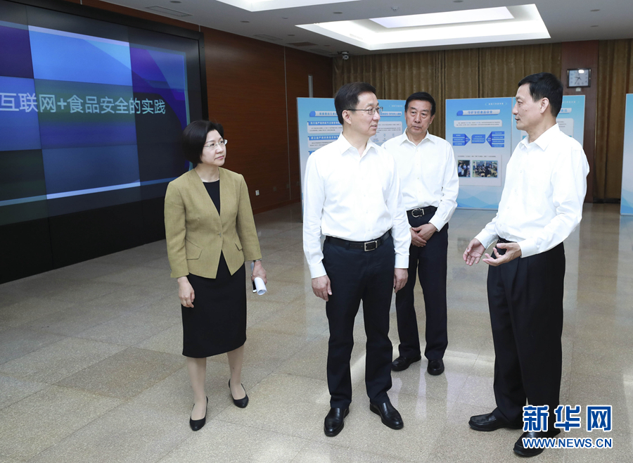 6月13日,在2019年全國食品安全宣傳周活動(dòng)前夕,中共中央政治局常委、國務(wù)院副總理、國務(wù)院食品安全委員會(huì)主任韓正到國務(wù)院食品安全委員會(huì)辦公室主持召開座談會(huì),聽取對食品安全工作的意見建議。這是會(huì)前,韓正參觀食品安全工作情況展示,考察了解食品安全智慧監(jiān)管的創(chuàng)新舉措。 新華社記者 龐興雷 攝