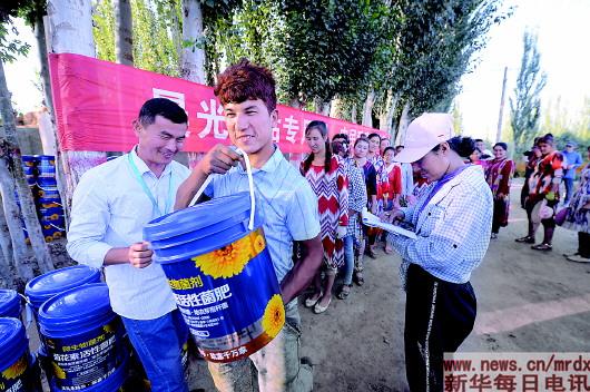 2019年7月,晨光生物免費向種植戶發放液體菊花素活性菌肥。