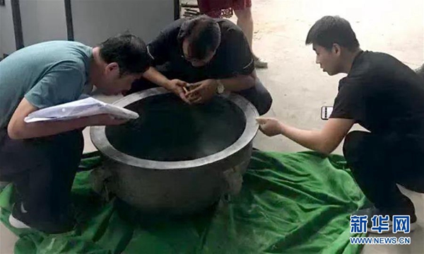警方在蘭州市西固區河口鎮一倉庫內截獲文物“鑒盆”(8月8日攝)。新華社發 (蘭州市公安局新聞辦 供圖)