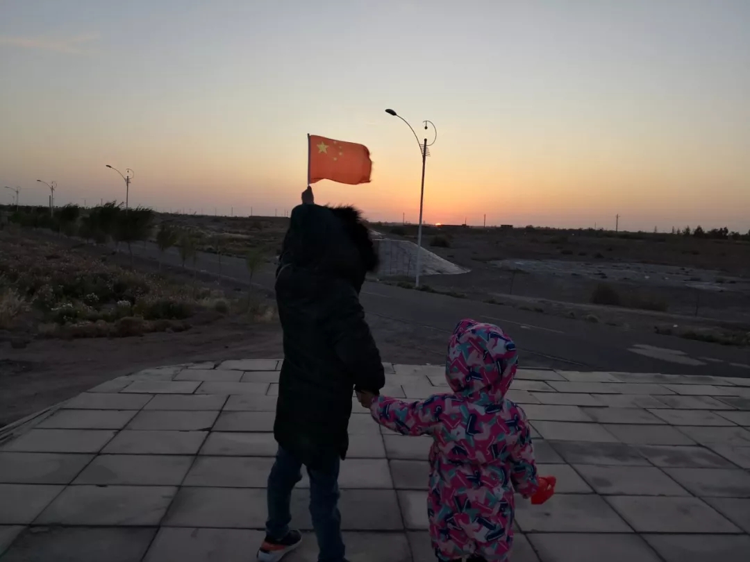 2019年10月1日,酒泉衛星發射中心。今天是國慶節,孩子們一起看日出。作者:黃建敏