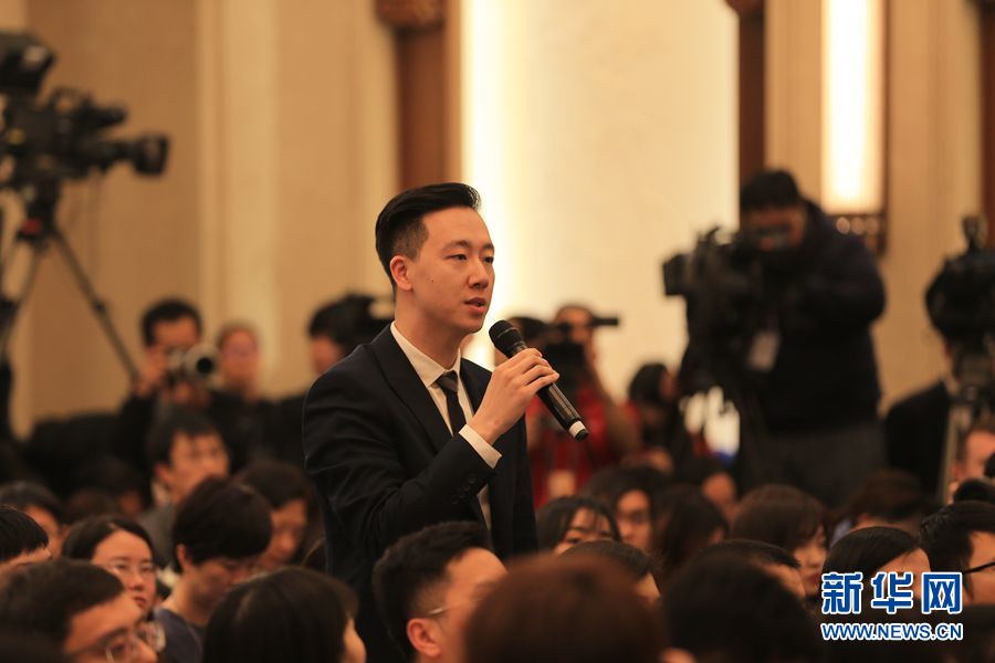 全國政協十三屆二次會議新聞發布會于3月2日15:00在人民大會堂一層新聞發布廳召開,大會新聞發言人郭衛民向中外媒體介紹本次大會有關情況并回答記者提問。圖為中國日報記者提問。新華網/中國政府網?劉廈 攝