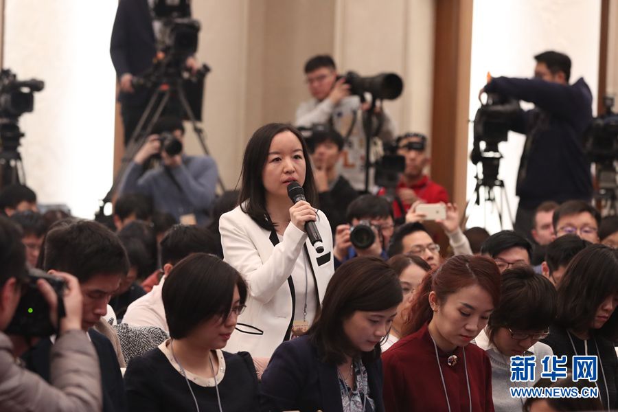 全國政協十三屆二次會議新聞發布會于3月2日15:00在人民大會堂一層新聞發布廳召開,大會新聞發言人郭衛民向中外媒體介紹本次大會有關情況并回答記者提問。圖為人民政協報記者提問。新華網/中國政府網?馬娟 攝