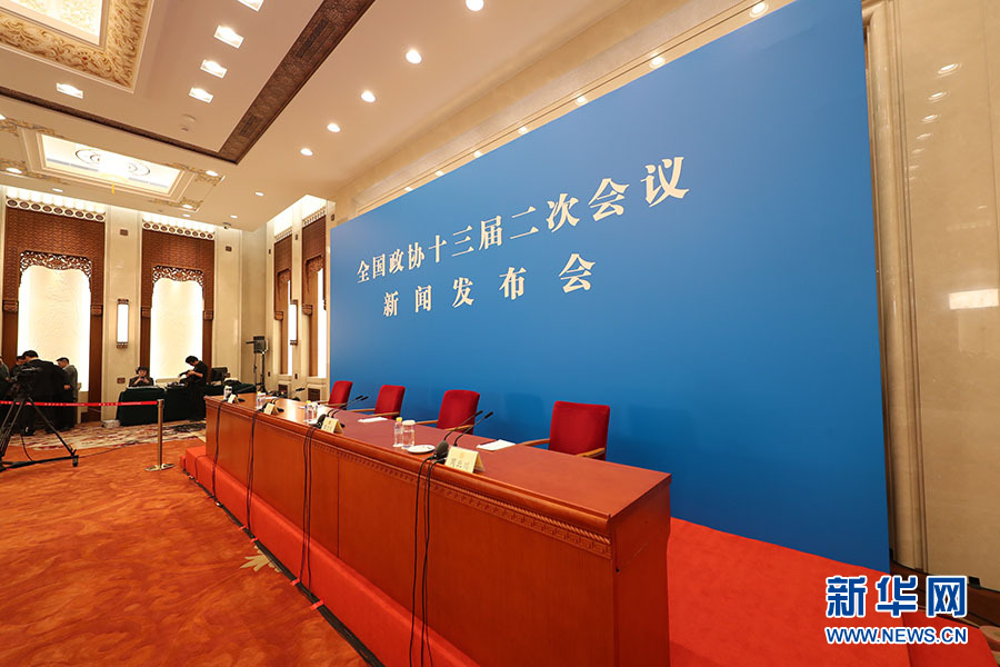 全國政協(xié)十三屆二次會議新聞發(fā)布會于3月2日15:00在人民大會堂一層新聞發(fā)布廳召開,大會新聞發(fā)言人郭衛(wèi)民向中外媒體介紹本次大會有關(guān)情況并回答記者提問。圖為新聞發(fā)布會開始前。新華網(wǎng)/中國政府網(wǎng) 陳杰 攝