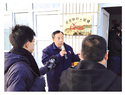 圖為駐落花營村工作隊(duì)第一書記李向明向記者介紹創(chuàng)辦“道德銀行+扶貧愛心超市”給村民帶來的變化。