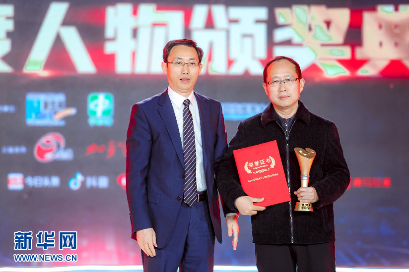 1月16日,“超能大叔”何永云(中)在頒獎典禮上。新華社記者 才揚 攝