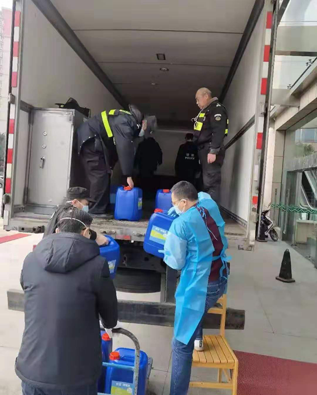 科技公司已經下班,只留下2名員工,阜寧郵政的4名員工就成了主力,大家一起努力,花了3個小時總算將500箱共10噸的消毒液和一些醫護用品裝上了車。