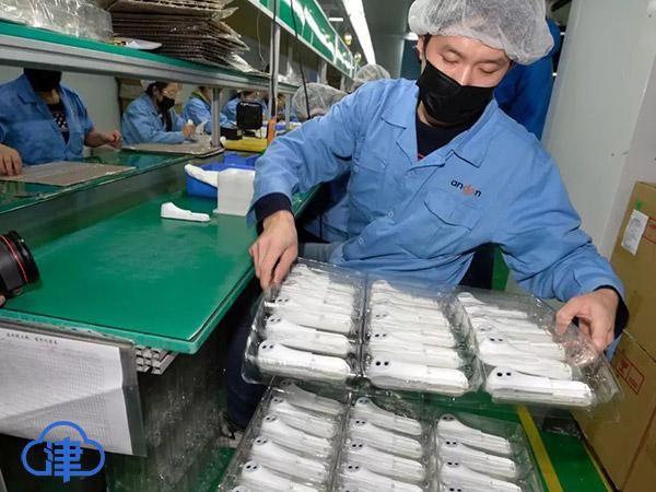施向健大年初一就開始安排復(fù)工的生產(chǎn)計劃、物料準(zhǔn)備等工作。正月初四,三分之一員工到崗,開始恢復(fù)生產(chǎn)。“現(xiàn)在有250多名員工參加生產(chǎn),以本地員工為主。目前,我們只生產(chǎn)紅外線額溫計,停止了其他所有商業(yè)需求,全力配合公共衛(wèi)生防疫需求。”施向健告訴記者。