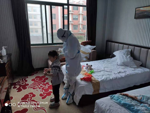 一大家子被隔離,兩個(gè)孩子不能丟在家里沒人管,這給安慶市迎江區(qū)疫情防控指揮部安置組出了道難題。“誰(shuí)來(lái)照顧已是密切接觸者的兩個(gè)年幼的孩子呢?”安慶市迎江區(qū)濱江街道黨工委書記趙明來(lái)告訴記者,大家商議之后,決定把兩個(gè)小家伙送到隔離醫(yī)學(xué)觀察點(diǎn),由專業(yè)的醫(yī)護(hù)人員照顧。