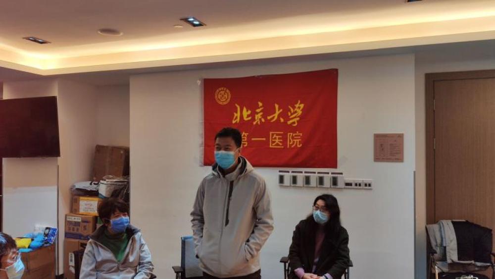 圖為北京大學第一醫院援湖北醫療隊李海潮和2019級臨床專業的學生開網絡會議。