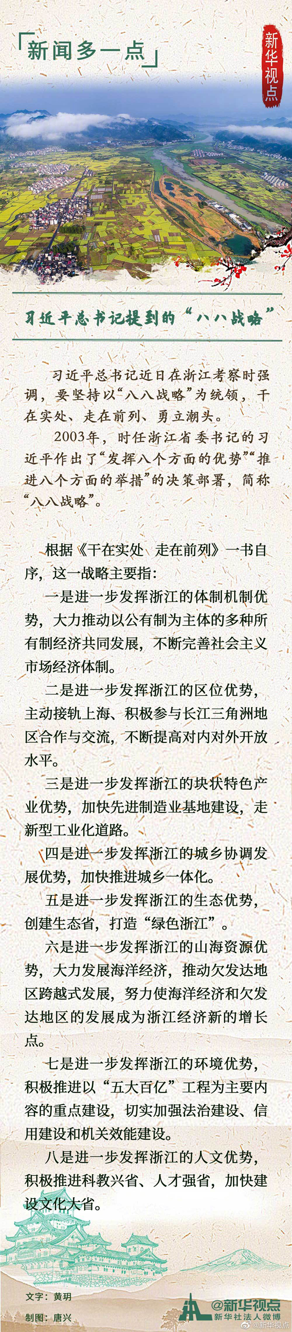 2003年,時任浙江省委書記的習近平作出了“發揮八個方面的優勢”“推進八個方面的舉措”的決策部署,簡稱“八八戰略”。