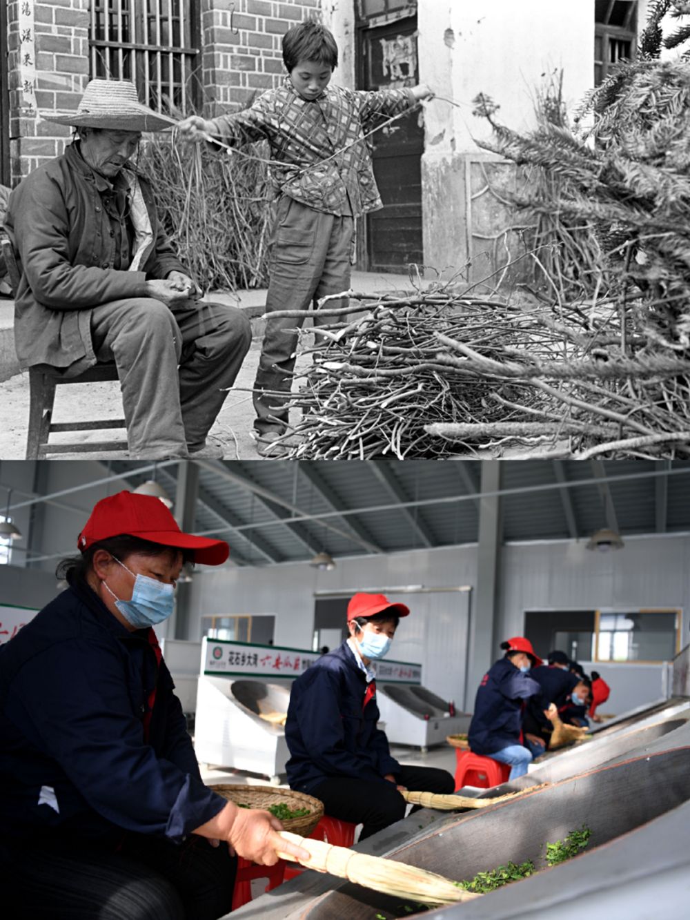 (上圖:過去金寨人守著柴火過日子,新華社記者張曙光攝;下圖:2020年4月16日,大灣村村民在金寨縣花石鄉茶產業扶貧車間里加工茶葉。新華社記者劉軍喜攝)