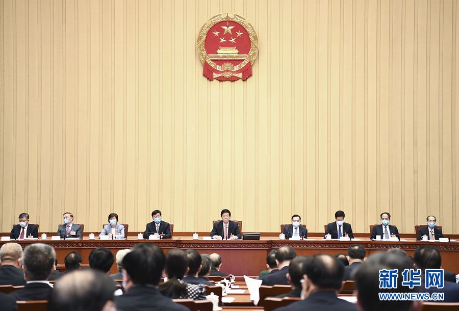 5月28日,十三屆全國人大三次會議主席團在北京人民大會堂舉行第四次會議。主席團常務主席栗戰書主持會議。 新華社記者 燕雁 攝