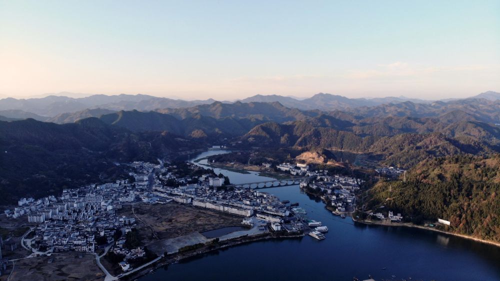 美麗的新安江山水畫廊(2019年11月15日攝,無人機照片)。新華社發(黃博涵攝)