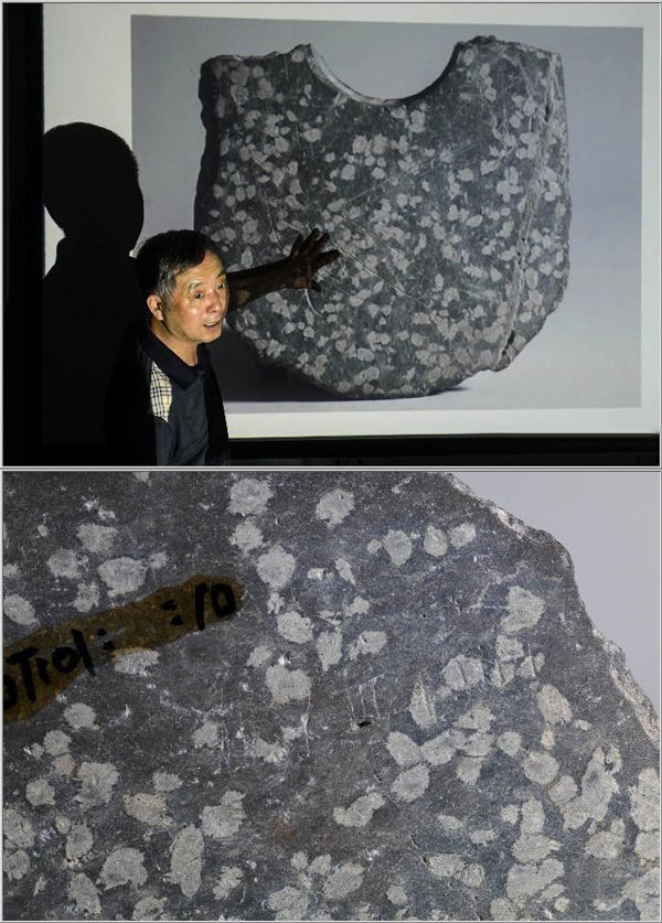 浙江平湖莊橋墳遺址,兩件殘石鉞上發現的刻畫符號經考證確認是良渚時期原始文字,距今約5000年 韓傳號 攝