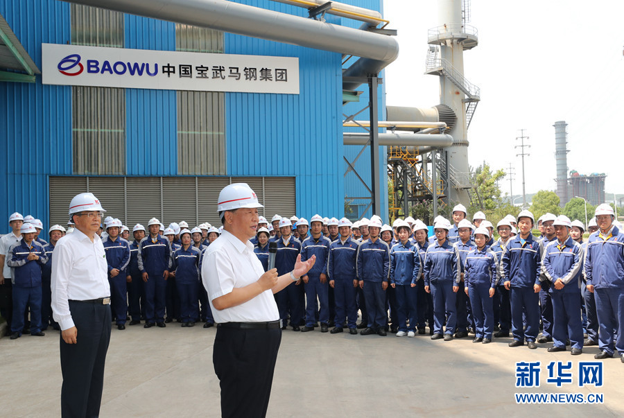 馬鞍山市因鋼而設、因鋼而興。習近平來到中國寶武馬鋼集團,了解企業生產經營情況,察看重點產品展示。隨后,習近平走進優質合金棒材車間,察看加熱爐、初軋機、中軋機等運行情況。車間外,企業勞動模范、工人代表看到總書記來了,熱烈鼓掌。習近平親切地同大家打招呼。他指出,疫情發生以來,馬鋼克服困難,率先復工復產,上半年產量和營收同比實現“雙升”。要抓住深化國有企業改革和推動長三角一體化發展的重大機遇,加強新材料新技術研發,開發生產更多技術含量高、附加值高的新產品,增強市場競爭力。勞動模范是共和國的功臣,要大力弘揚勞模精神。