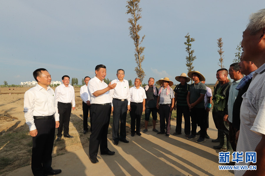 8月18日至21日,中共中央總書記、國家主席、中央軍委主席習近平在安徽省考察。這是18日下午,習近平在阜陽市阜南縣蒙洼蓄洪區,同正在退水地塊補種蔬菜的鄉親們親切交流。 新華社記者 鞠鵬 攝