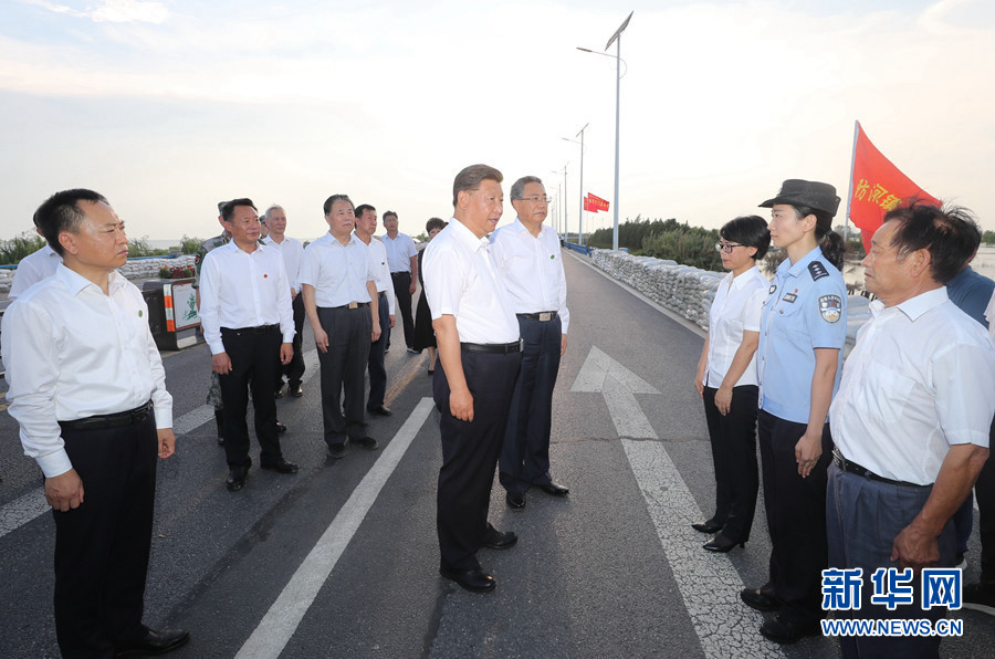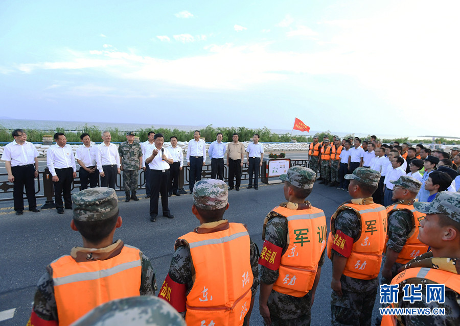 大堤上,習近平親切看望慰問了在防汛抗洪救災斗爭中犧牲同志的家屬、防汛抗洪一線人員、先進典型代表和參加抗洪搶險的部隊官兵,并向全國奮戰在防汛抗洪救災一線的同志們表示誠摯的問候。他強調,今年入汛以來,南北方江河湖泊接連出現超警戒水位險情。廣大干部群眾和人民解放軍、武警官兵堅決響應黨和政府號召,發揚不怕累苦、不怕疲勞、不怕犧牲的精神斗志,堅守在防汛抗洪救災第一線,涌現了許多先進典型和感人事跡,展現了中國人民眾志成城、頑強拼搏、敢于勝利的英雄氣概,書寫了洪水無情人有情的人間大愛。黨和人民感謝你們!