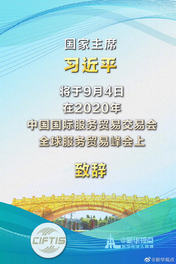 習近平將在2020年中國國際服務(wù)貿(mào)易交易會全球服務(wù)貿(mào)易峰會上致辭