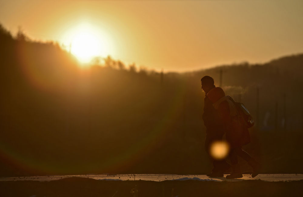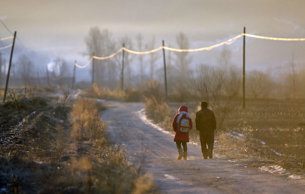 ↑迎著朝陽(yáng)上學(xué)