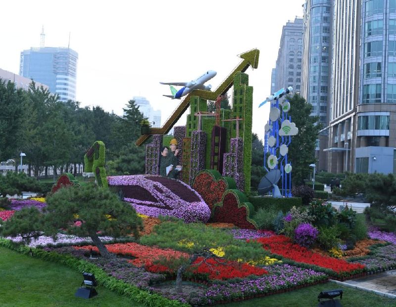 ↑《高質(zhì)量發(fā)展》花壇(東單路口東南角)