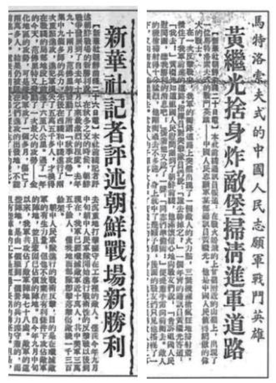 上甘嶺戰役期間,國內報紙刊登的新華社部分報道版面。
