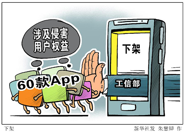 新華社北京11月10日電(記者張辛欣)工信部10日通報,截至目前,經第三方檢測機構核查復檢,有贊精選、紅布林等60款App存在侵害用戶權益行為且未按照要求完成整改。依據有關法律和規范性文件要求,工信部組織對上述App進行下架。