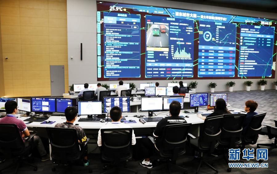 工作人員在上海市浦東新區城市運行管理中心內工作(2019年8月31日攝)。新華社記者 方喆 攝
